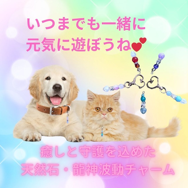 商品説明文 可愛いわんちゃん、ねこちゃん用のパワーストーンチャームです。 もちろん、龍神様のパワーもお入れします。 【愛犬・愛猫用 龍神波動パワーストーンチャーム】 ― 龍神の波動をまとう、特別なラグジュアリー守護ジュエリー ― 大切なパートナーである愛犬・愛猫に、 気品と神聖なエネルギーを兼ね備えた“龍神の祝福”を。 ■仕様 ・天然石 ・手軽に着けれるチャーム フック部分の開きは最大約5mmです。 ・取り付け部分がかわいいハート ■このチャームは、 ・健やかな生命力の守護 ・愛と絆を深める波動 ・邪気からの保護と安定 を願う、極上のスピリチュアルジュエリー。 ラグジュアリーでありながら、深い安心感をもたらす一品。 あなたと愛する存在を、龍神の力がそっと見守ります。 パワーストーンは、ストレス緩和、健康、愛情とストーンの効果を発揮してくれます。 パワーストーンは、持っているだけでなく、効果を最大限に引き出すための取り扱い方法もお伝え致します。浄化を行うことで、ストーンの力が更に強まりますので、浄化に必要な浄化スプレー(別途販売中)や浄化用クラスター水晶などで毎日浄化されることをお勧めいたします。 ※この商品は強いエネルギーですので、浄化はしっかりと行っていただくことをお勧めします。 発送までに2週間ほどかかる場合がございます。ご理解のほどお願い申し上げます。 製品には万全を期しておりますが 飼い主様の管理のもと注意してお使いくださいませ 販売後のご利用に関しましては保証致しかねます ※ストーンは自然の素材ですので、ご使用中に割れることがあります。 ※天然石のため色合いはすべて異なります。h 効果は個人により異なりますので、ご了承下さいませ。あなたの人生により多くの幸福が訪れますように、心より願っております!